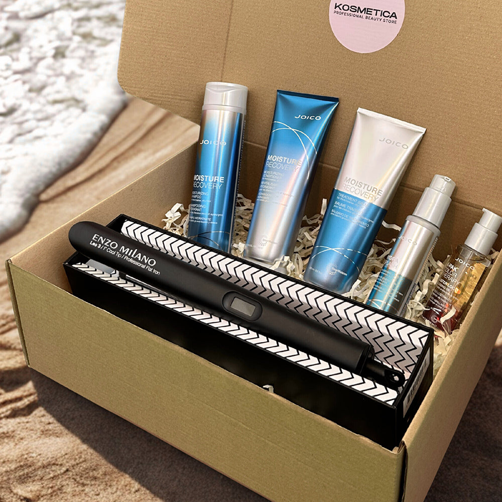 Box hidratación cabello grueso Joico Moisture Recovery + Plancha Profesional de regalo